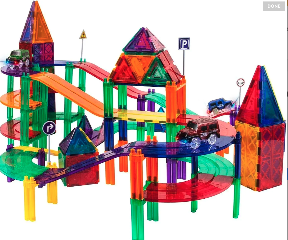 賽車軌道組加上 LED 小車子,就是孩子的夢幻磁力樂園!組好磁力積木後,小車子能在自創的軌道上飛馳,每次都有新玩法、每次都能開心大叫~