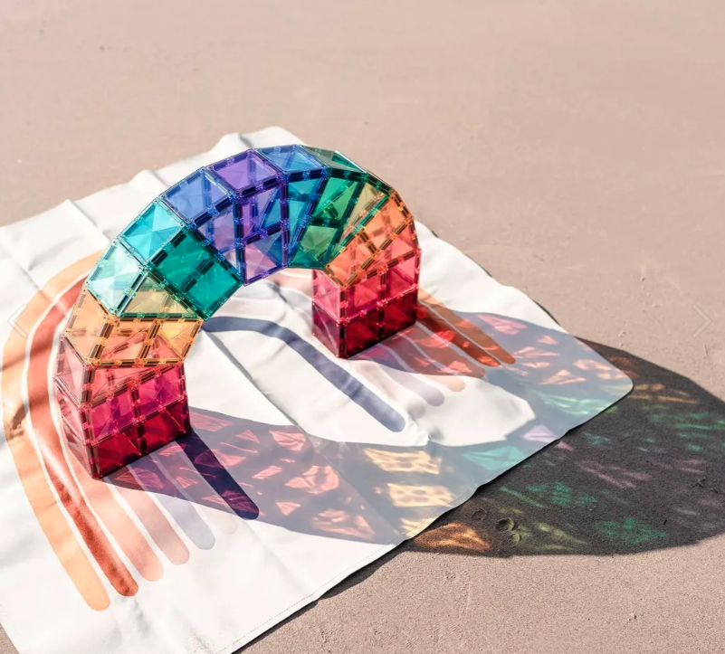 澳洲 Connetix 磁力建構片,是全球家長、幼教老師與 STEAM 教育專家最推薦的磁性建構玩具之一。它的核心魅力就在於「透明、安全、無限延展」,每一片磁力片都採用高品質、加厚的無毒塑料製成,內嵌強力磁鐵,四周還有超音波焊接與鉚釘加固設計,不僅耐摔耐用,安全性也遠高於一般磁力片。透明的設計搭配亮麗色彩,讓孩子在搭建時能同時欣賞光影折射效果,玩起來就像在創作一件藝術品。