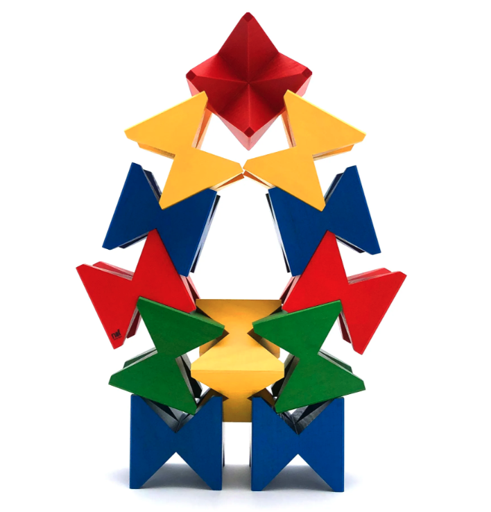 naef 的設計大多有幾何造型與獨特結構,像是曲線、鏤空、斜角,甚至有看似違反直覺的平衡設計。孩子在操作時,需要嘗試不同的排列方式,過程中自然會進行實驗、觀察與修正,這就是最純粹的 STEAM 教育精神。對成人而言,堆疊 naef 也是一種療癒體驗,能在專注中進入沉浸狀態,就像一場結合藝術與冥想的遊戲。