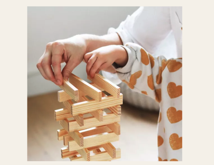 孩子在遊戲過程中,不斷嘗試中培養空間感、耐心與邏輯思維。當小木板一片片疊高,重心逐漸搖晃時,孩子自然學會觀察平衡、調整結構,這正是數理與物理的基礎概念。對學齡前的孩子來說,它能訓練專注力與手眼協調;對年紀更大的孩子甚至成人,則能挑戰複雜的建築結構,進一步培養解決問題的能力。