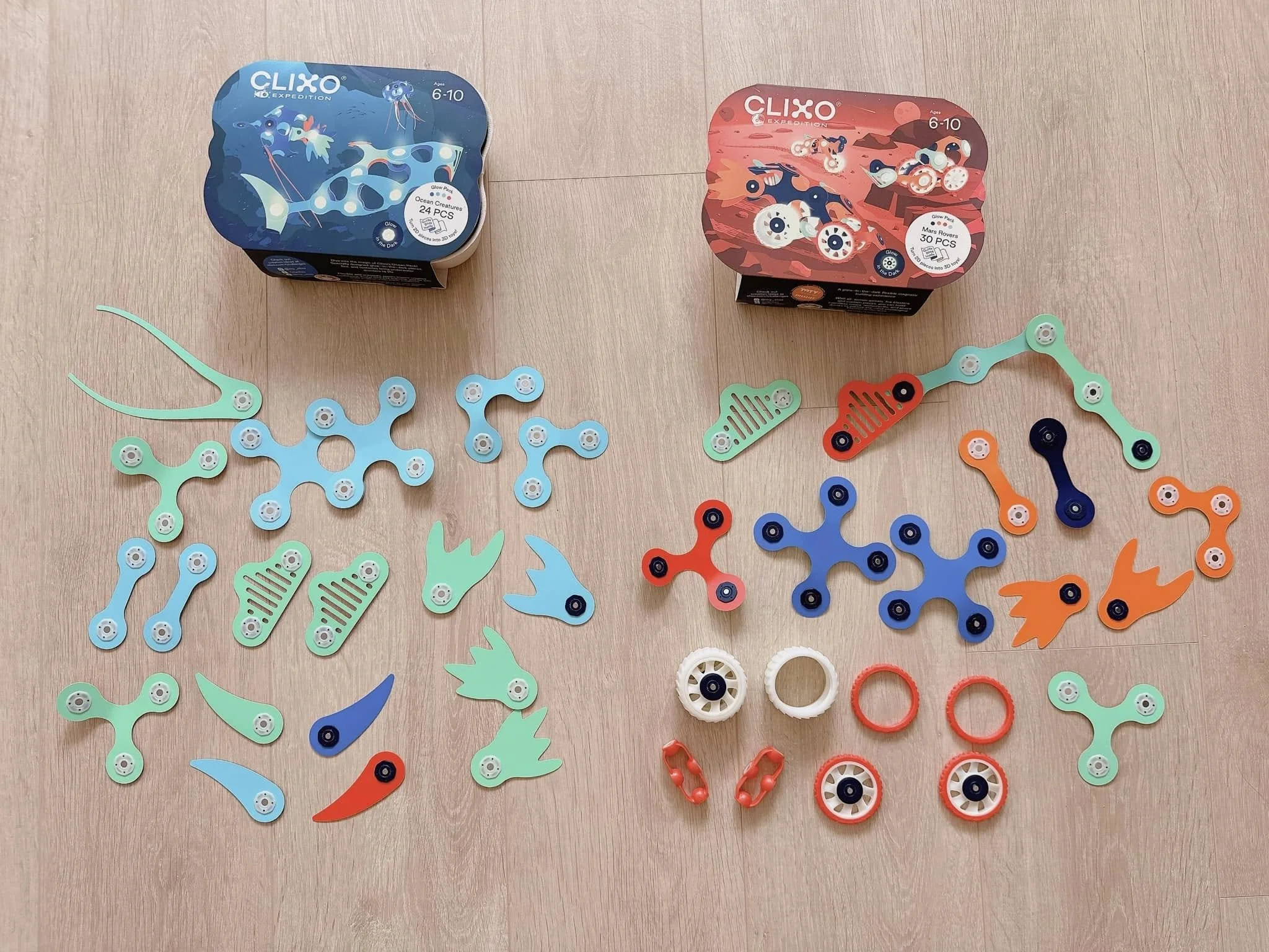 Clixo 創樂多磁力片來自紐約,結合扁平設計與內嵌磁力,讓孩子可360°旋轉、彎折、捲起拼接,創造出立體結構、動物造型甚至可穿戴配件。重量輕、體積小,非常適合外出攜帶,是一款從3歲玩到小學都不退燒的磁力創意玩具。