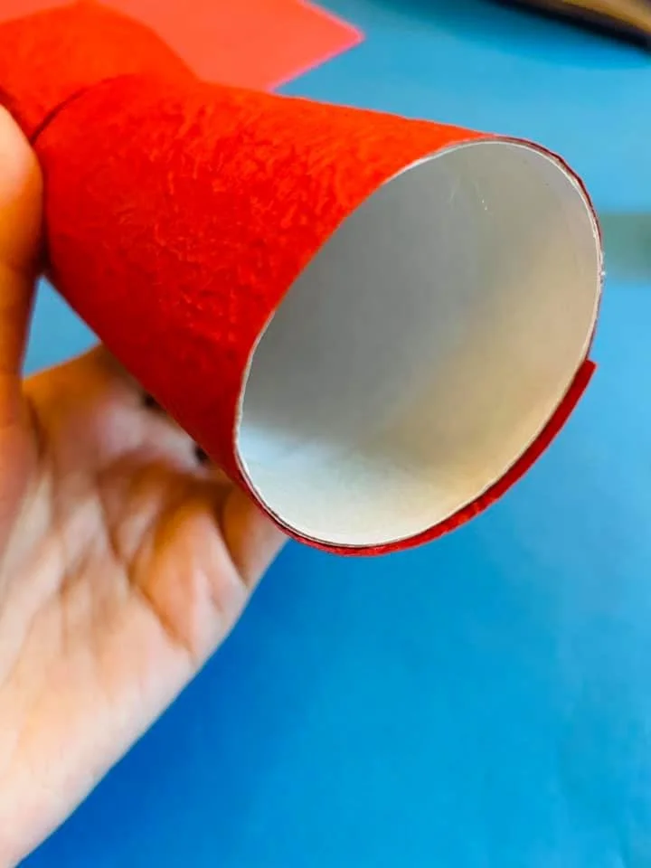 捲筒用色紙包覆,把皺紋紙剪成條狀。