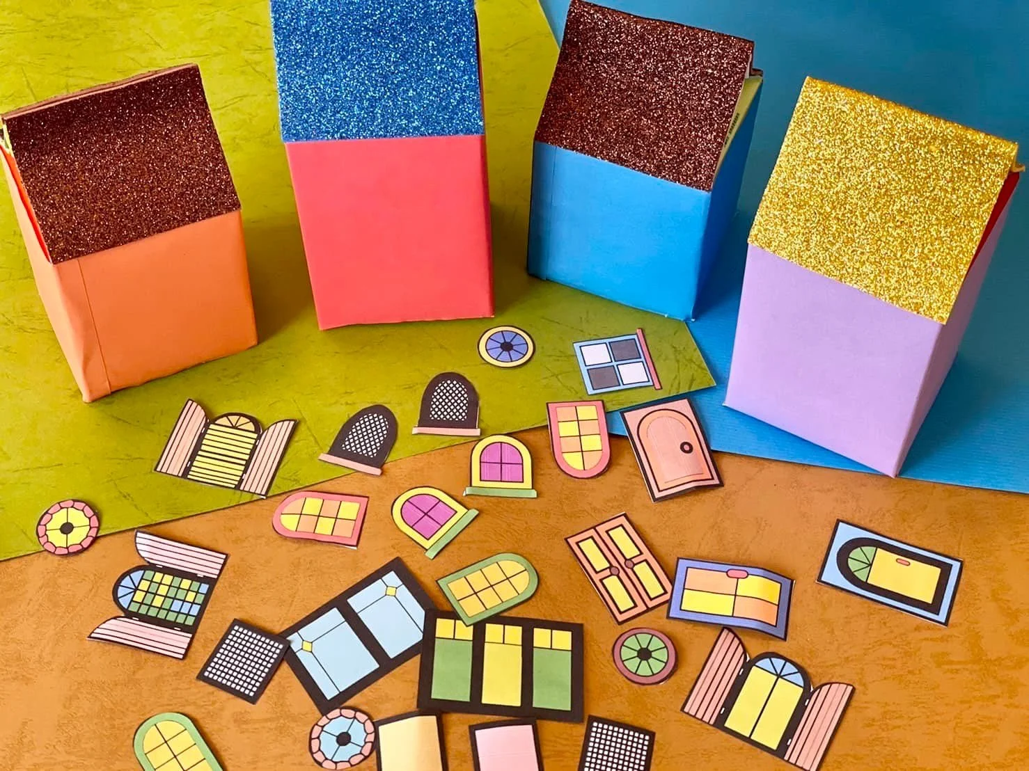 2. 將圖檔門窗造型著色剪下後,貼於空盒上即完成。