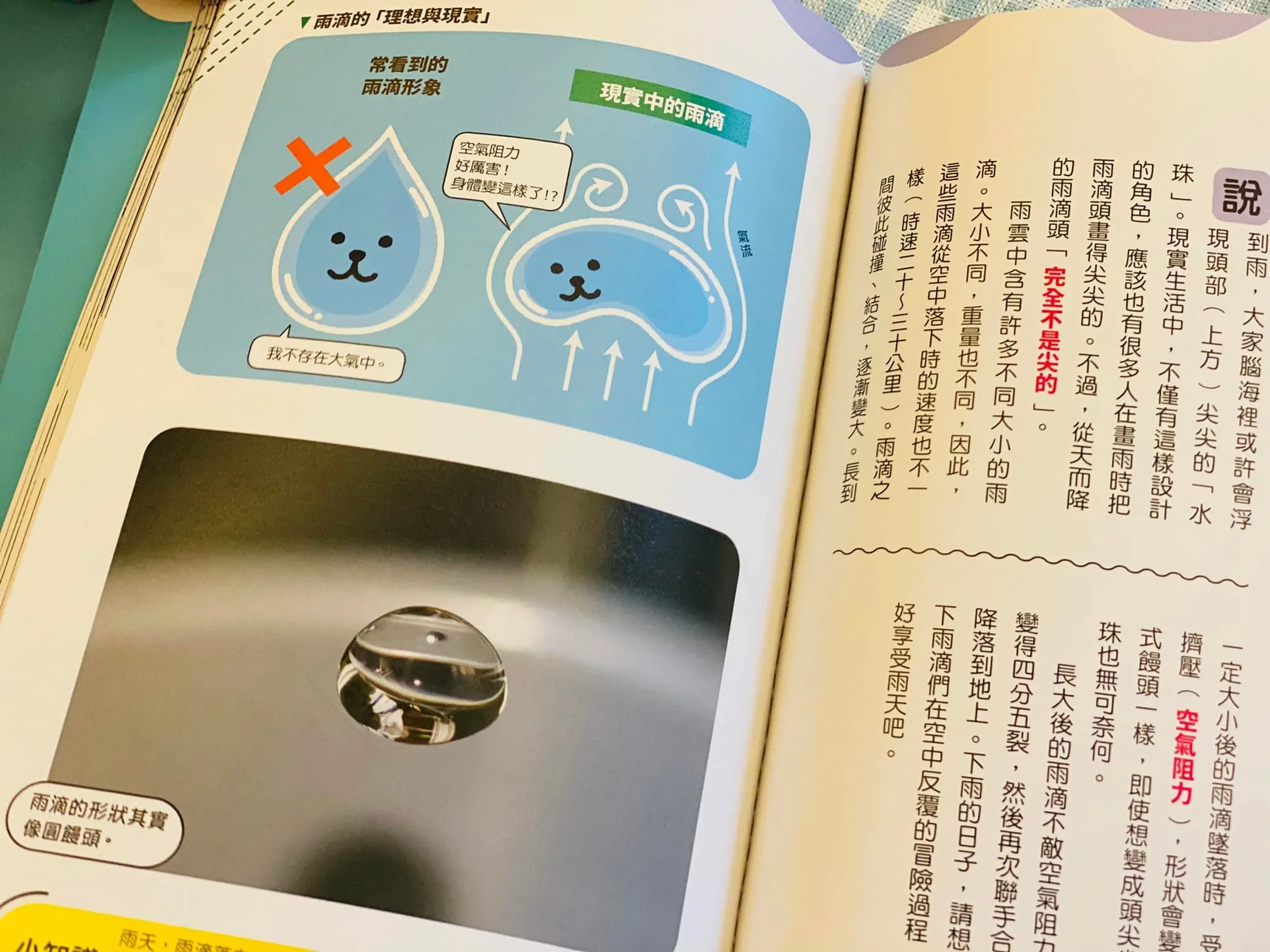 而漫畫中我們所看到的頭尖尖的雨滴,在生活中其實不存在,因為當雨滴落下受到 空氣阻力 時,反而是變成饅頭形狀圓圓的,很有趣吧!