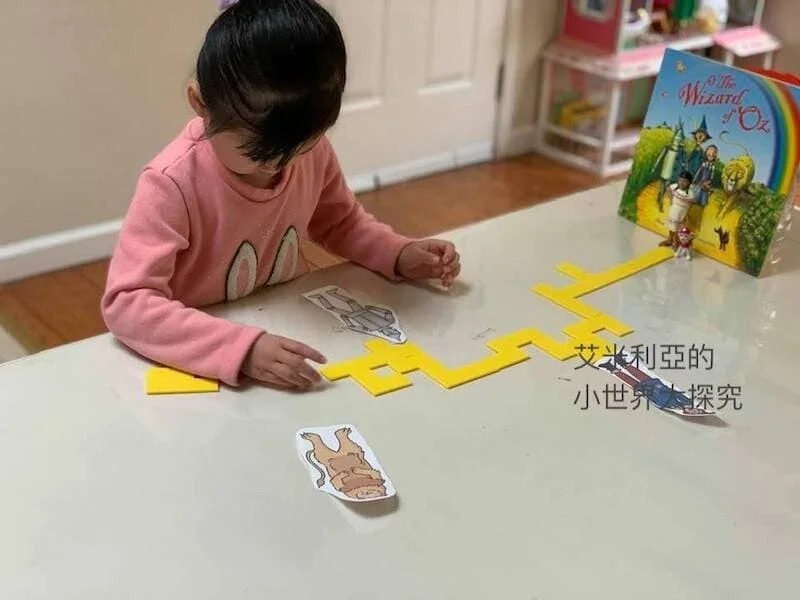 接著讓艾米,幫桃樂絲排出一條黃磚道,路上會遇到「稻草人」、「錫人」、「獅子」。