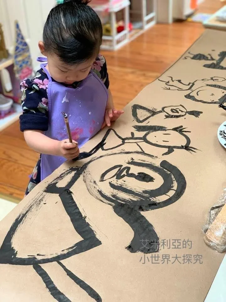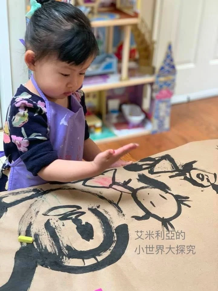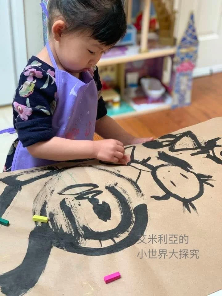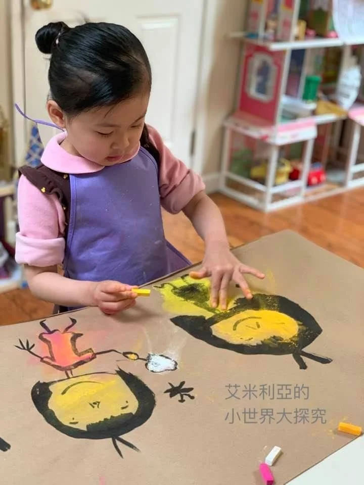 等墨汁乾了之後,再提供色粉筆,自由著色。