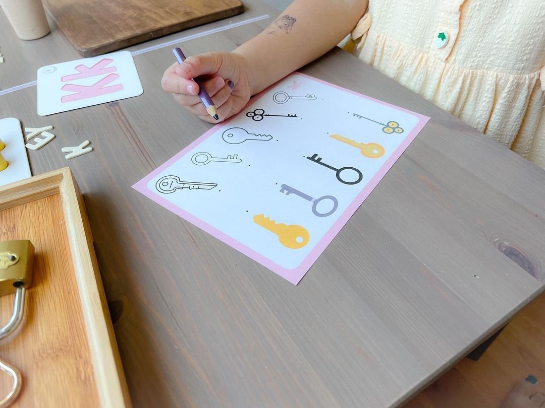 如果是在安全有大人監看的情況下,我比較傾向讓小孩直接玩真的實品,準備幾款不同的鎖,讓小孩去摸索該如何打開,是一字的鑰匙呢?還是十字的鑰匙呢?