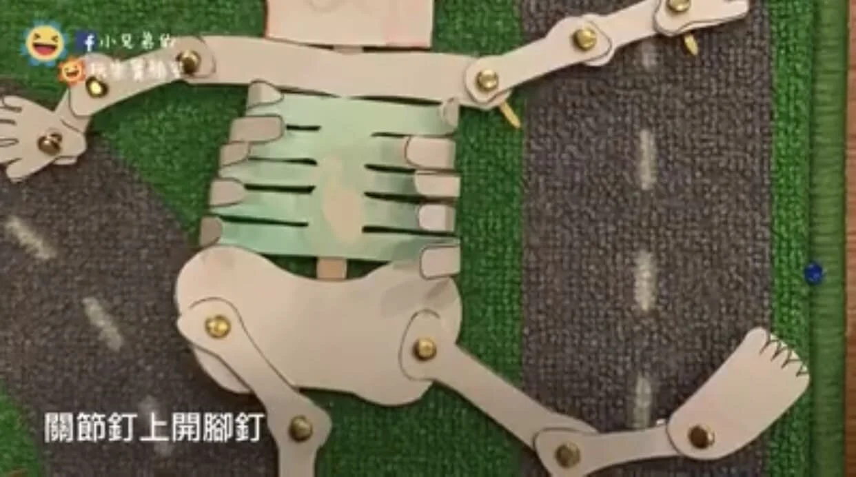 5、手腳的骨頭用開腳釘連接,做出活動關節,手腳可以甩來甩去,這就是可愛的骨頭人了!