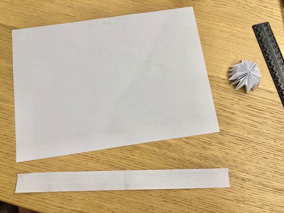 首先,先將一張 A4 紙沿著長邊切割成一半,變成兩個長條狀,一個齒輪只用一個長條。