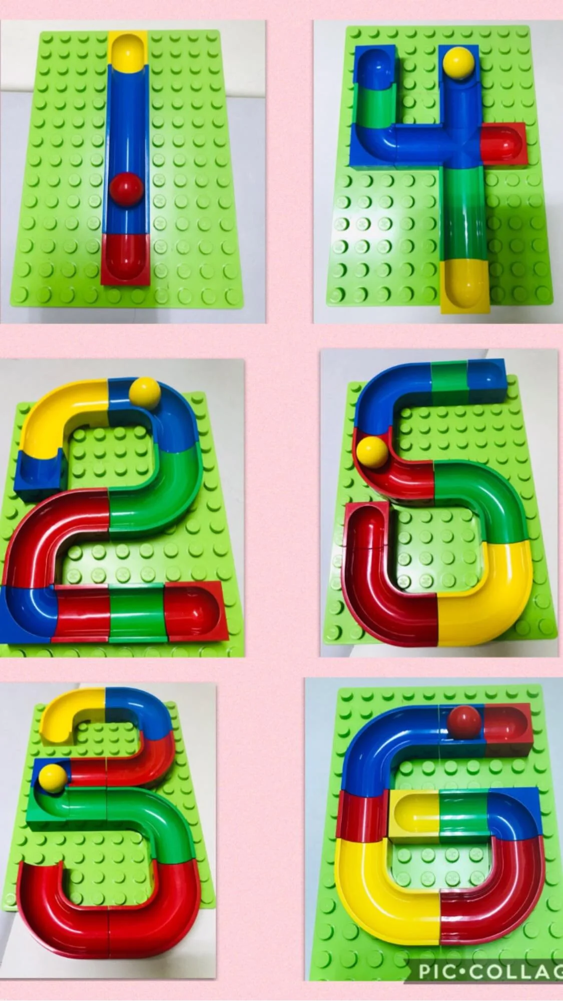 不用底板的軌道拼法,數字筆順結尾的部分改成斜坡,不但可以阻止球球滾出去,還可以讓球球加速,「2」和「7」是Nyle 拼的喔