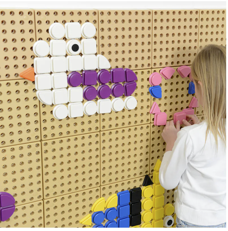 有磁力的玩教具也很適合在牆上玩。