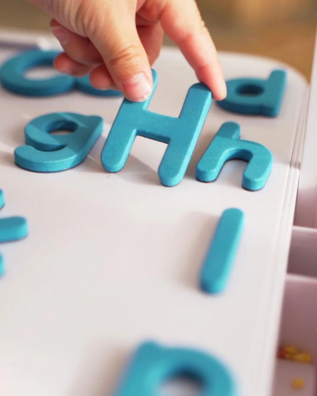 4、再從感官盆中找出該大寫字母配對放在一旁的小寫字母。