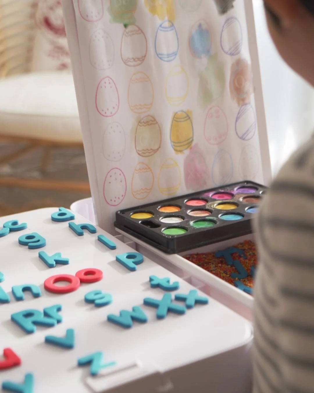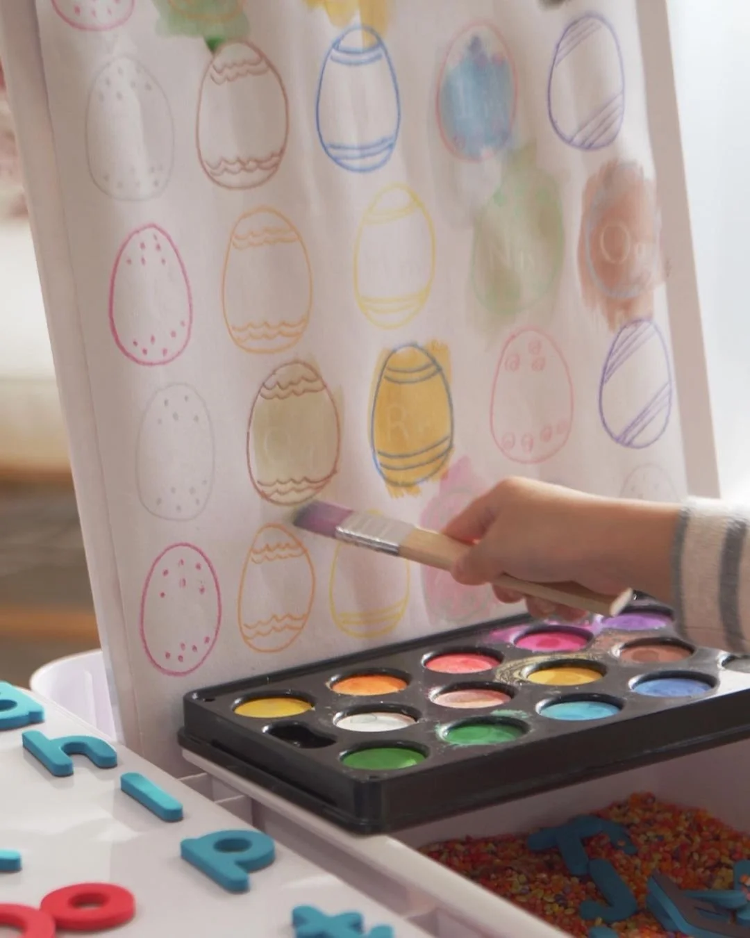 3、讓小孩使用水彩塗鴉彩蛋,隱藏的字母就會顯露出來。