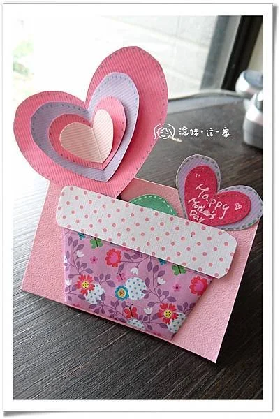 這次滾媽就把花和卡片結合在一起,變成一個愛心滿滿的小盆栽卡片,