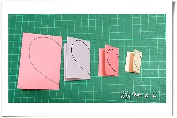 2、再將4張紙對折後畫出半個愛心並剪下。