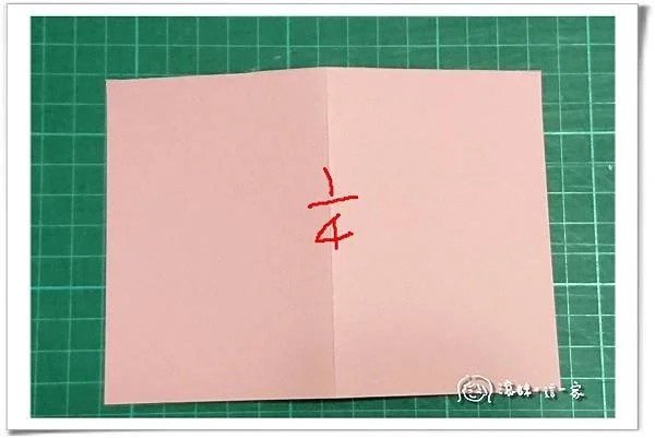 1、準備一張1/4 A4大小的美術紙並對折。1/4 的A4就是將A4的美術紙對折再對折後的大小。
